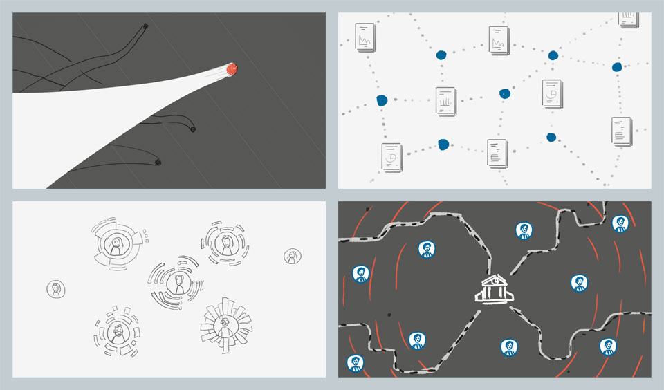Before writing the script we gathered detailed input from a group of stakeholders across the marketing team. This helped us to concentrate on the key messages that would resonate most strongly with the target audience. It was decided that we should focus on the impact a successful research strategy can have on an institution's reputation. We developed visual ideas alongside the script writing so that the animation and voiceover would be tightly integrated.
